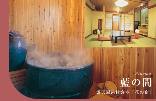 露天風呂付客室「花の宿」。3種類のお部屋は、それぞれに個性的な露天風呂を有するプライベート空間です。